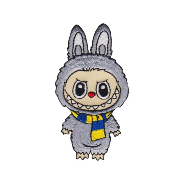 Embleem Labubu met blauw gele sjaal