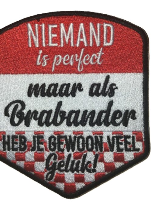 embleem niemand is perfect, maar als Brabander hedde veul geluk