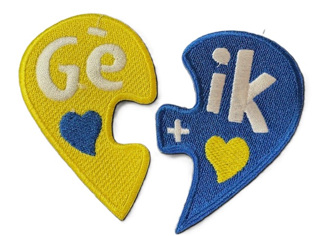 Embleem puzzelstukjes Ge en ik blauw geel