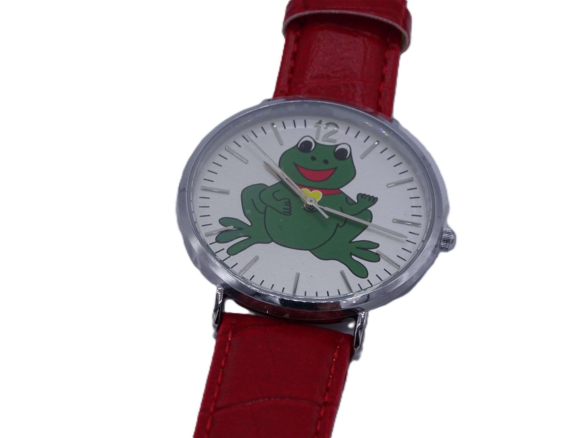 Met kikker in de wijzerplaat en echt lederen band is het een