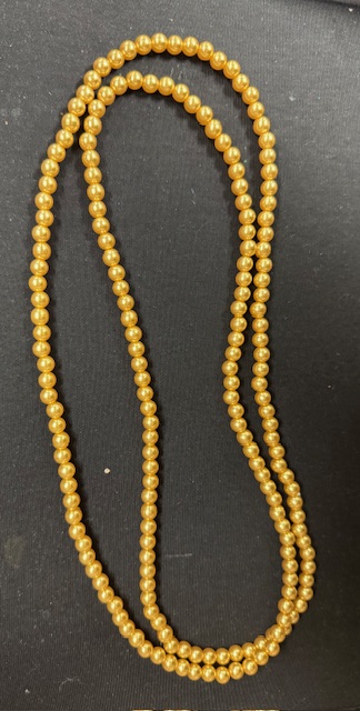Lange parel ketting in diverse kleuren.