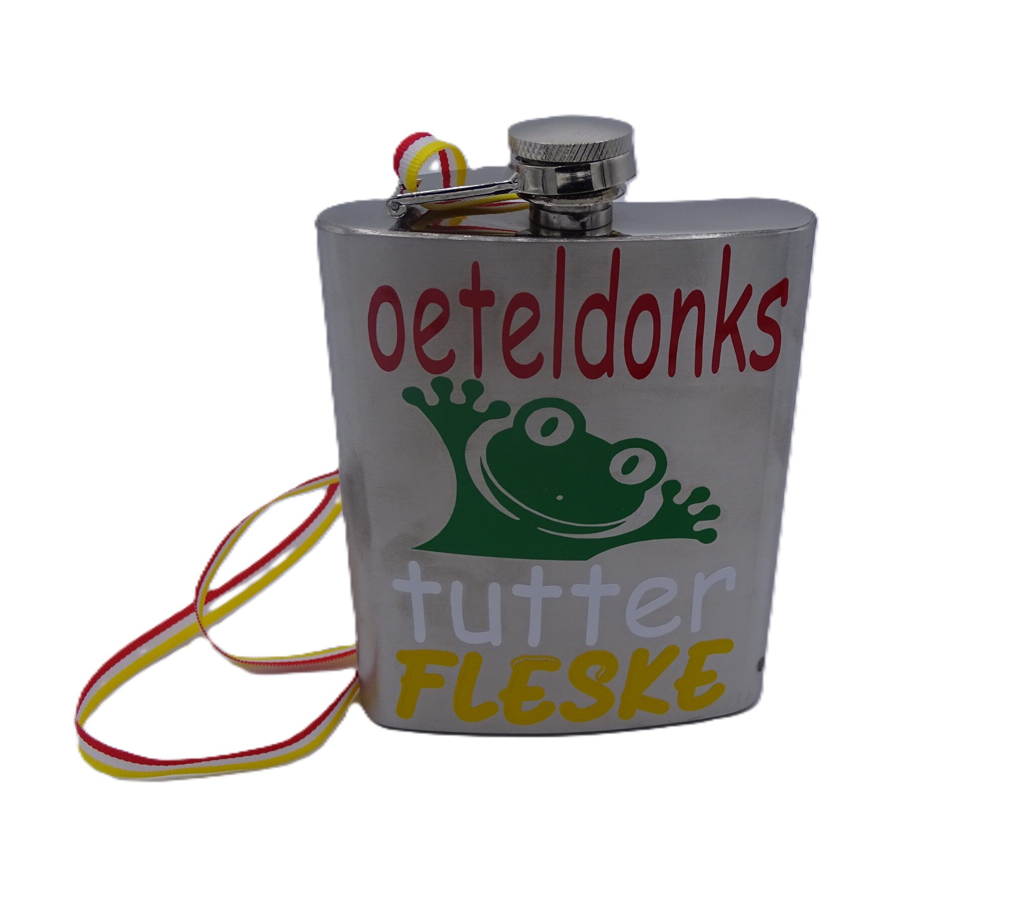 Een mooie heupfles om onderweg of tijdens carnaval of 11-11 wat lekkere drank mee te kunnen nemen.