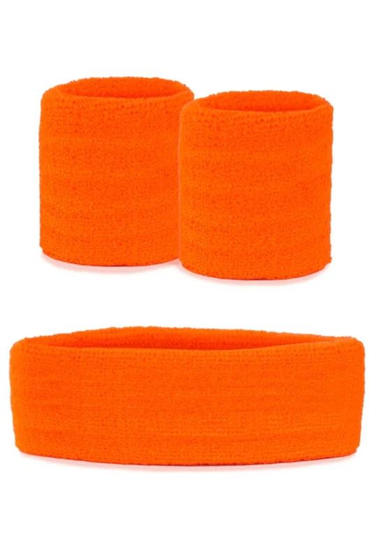 Oranje zweetband hoofd en pols