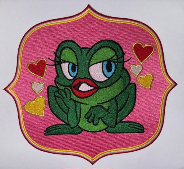 Rug embleem kikker met hartjes