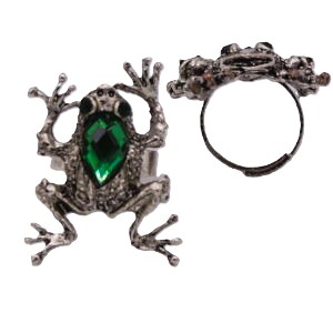 Verstelbare ring Kikker met groen strass aantal