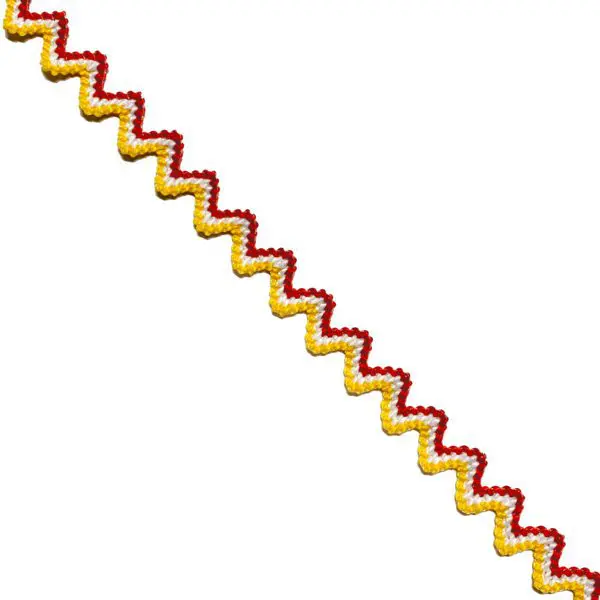 Zigzagband Oeteldonk in Rood/Wit/Geel in 10mm en 15mm breed